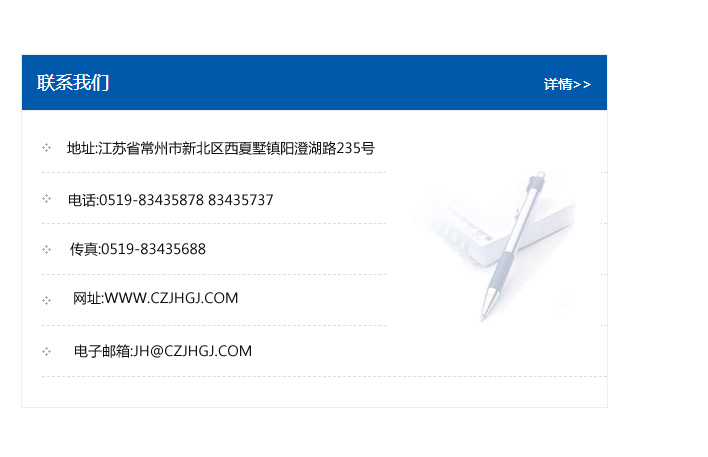 傳真:0519-83435688    郵編:213135    網址:WWW.czjhgj_com.xcbelt.com    電子郵箱:JH@czjhgj_com.xcbelt.com